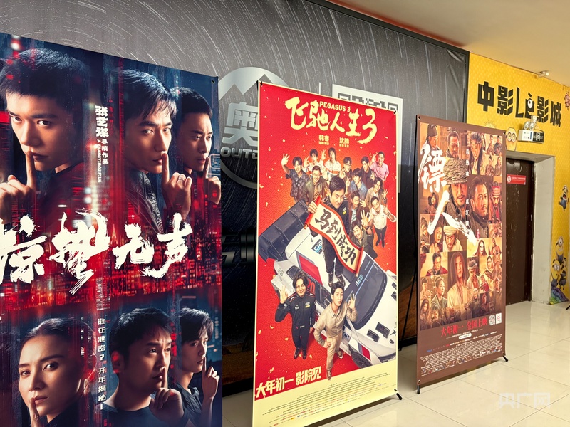 影院门前的春节档电影海报(央广网见习记者 钟金秀摄)